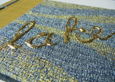 Decorative bookbinding for a baby book.