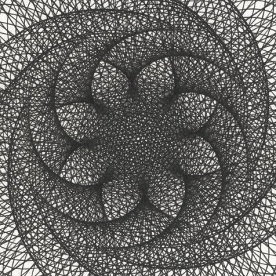 “Celestial Queen” serial drawings. My “serial drawings”… a series of serials really… present every permutation allowed by my drawing apparatus within a set of given parameters. Each series is a sort of family of drawings. Individuals yes, but with shared characteristics that present in various permutations.